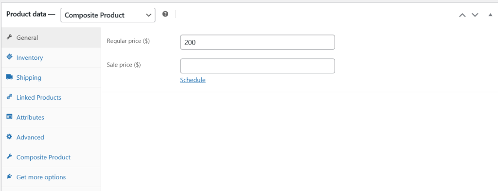 All composite products must have a product price and choose product type “Composite Product”.