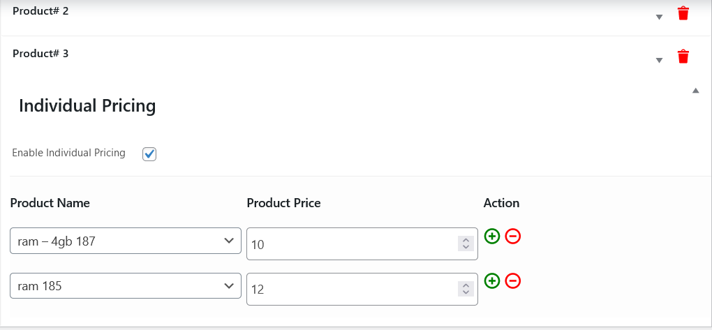Individual pricing are used to modify the product regular price specifically for these composite products. For example the product Ram has 10$ regular price but we can manage its price for that composite product specifically.