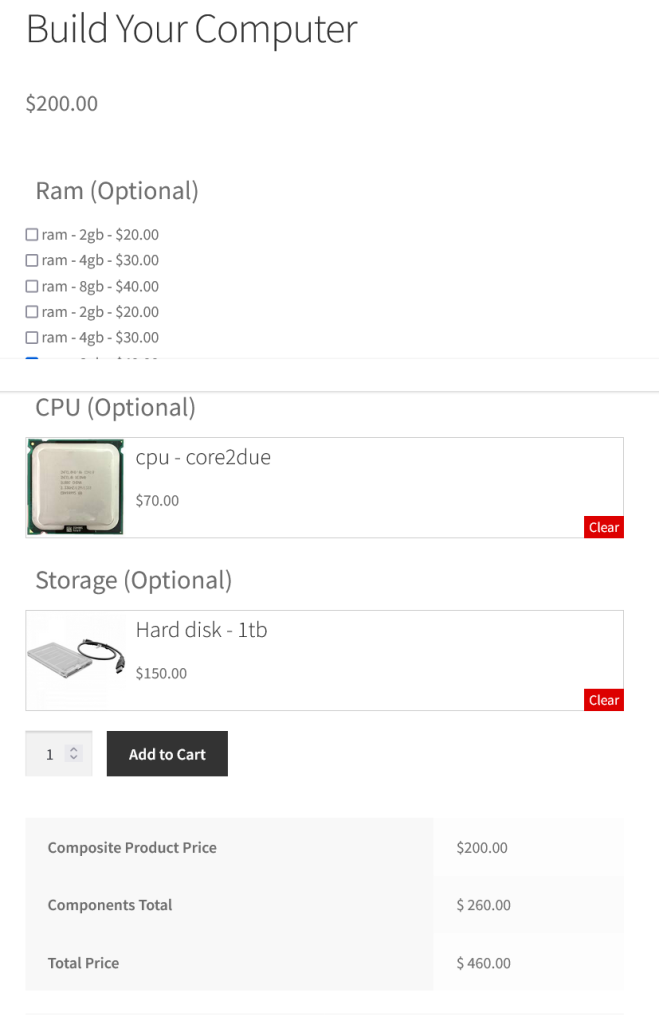 Composite Product Bundles Plugin allows users to add fields on the composite product page. They can add a selection of multiple products by their choice. Furthermore, helps for discount on the component field and supports for individual and combined pricing.