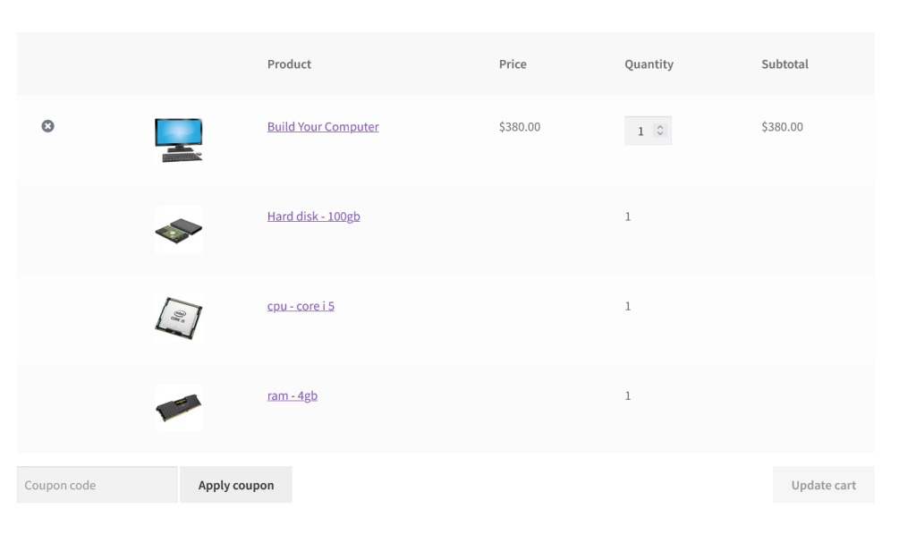 Composite Products in Cart