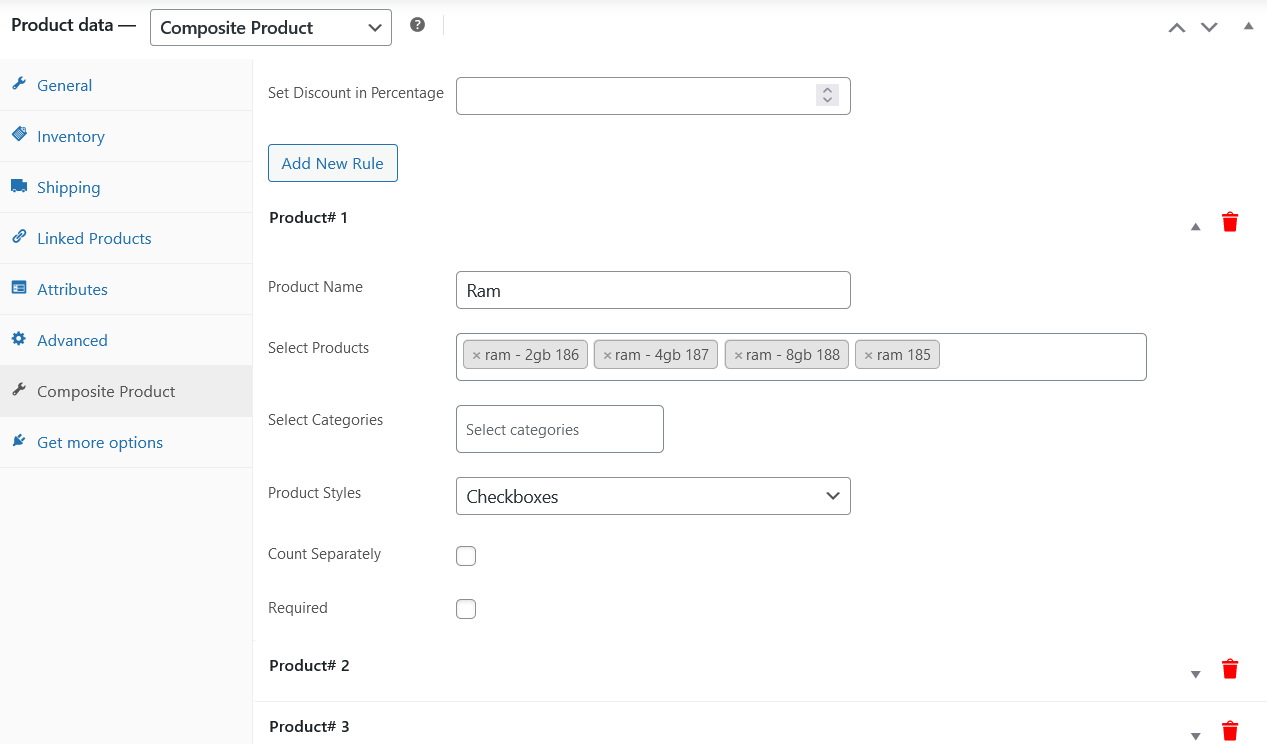 Click Add New Rule for adding multiple composite products.